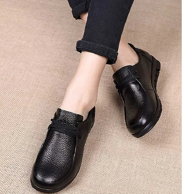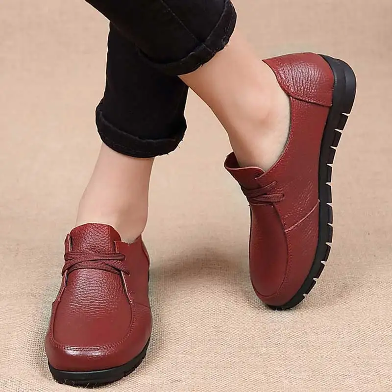 Women's Flats Summer Leather Loafers Casual Shoes Lady Driving Flat Moccasins Lace Up Round Toe Chaussure Femme Size 35-42